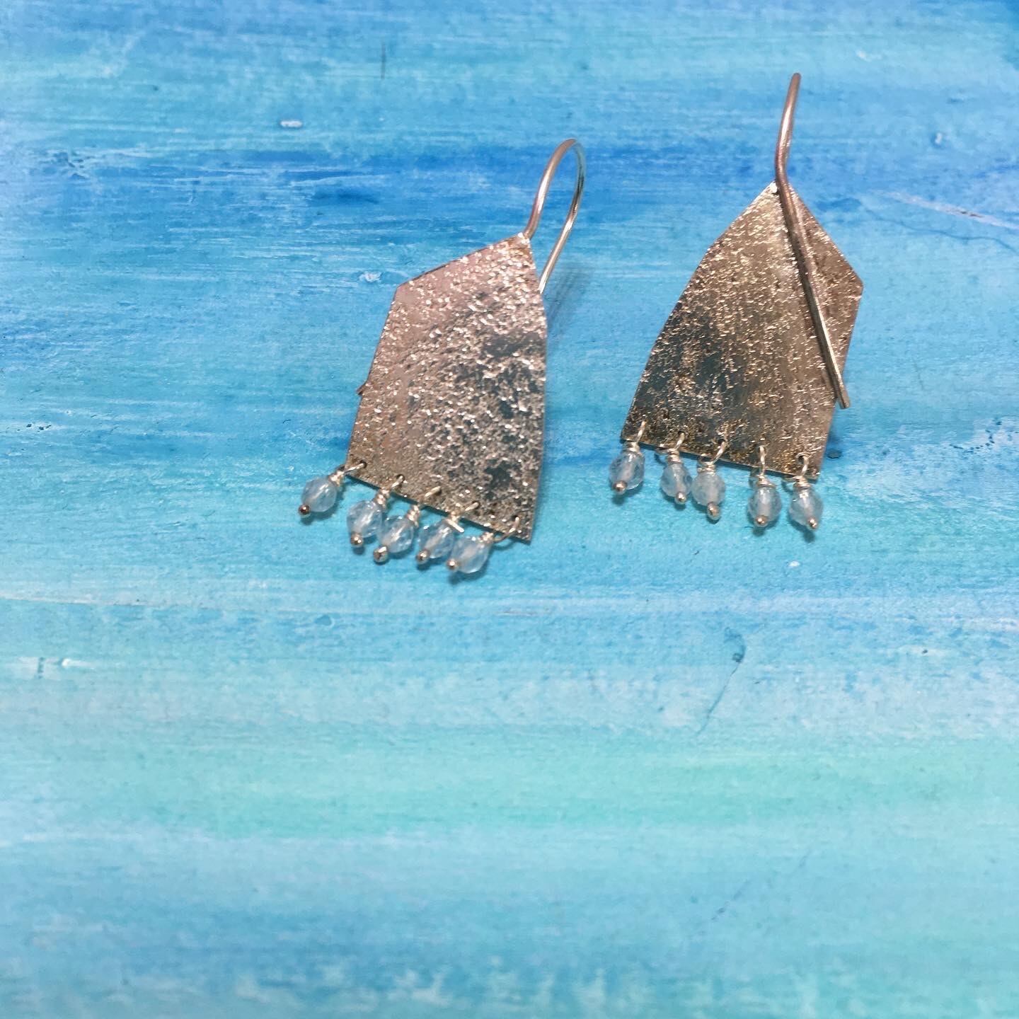 とても小粒なアクアマリンを一つずつ手作業で付けており、疾走するヨットの波を表現しています。