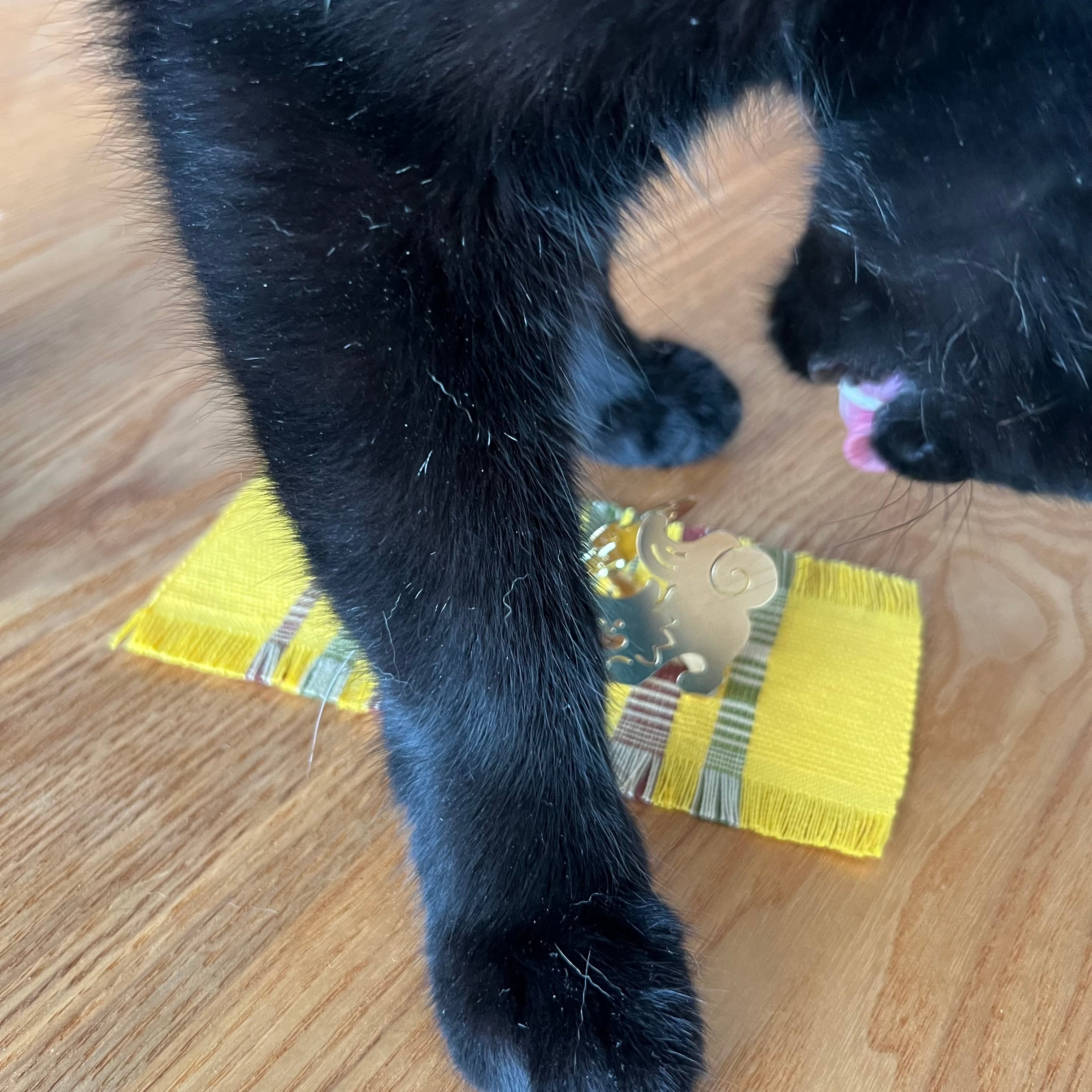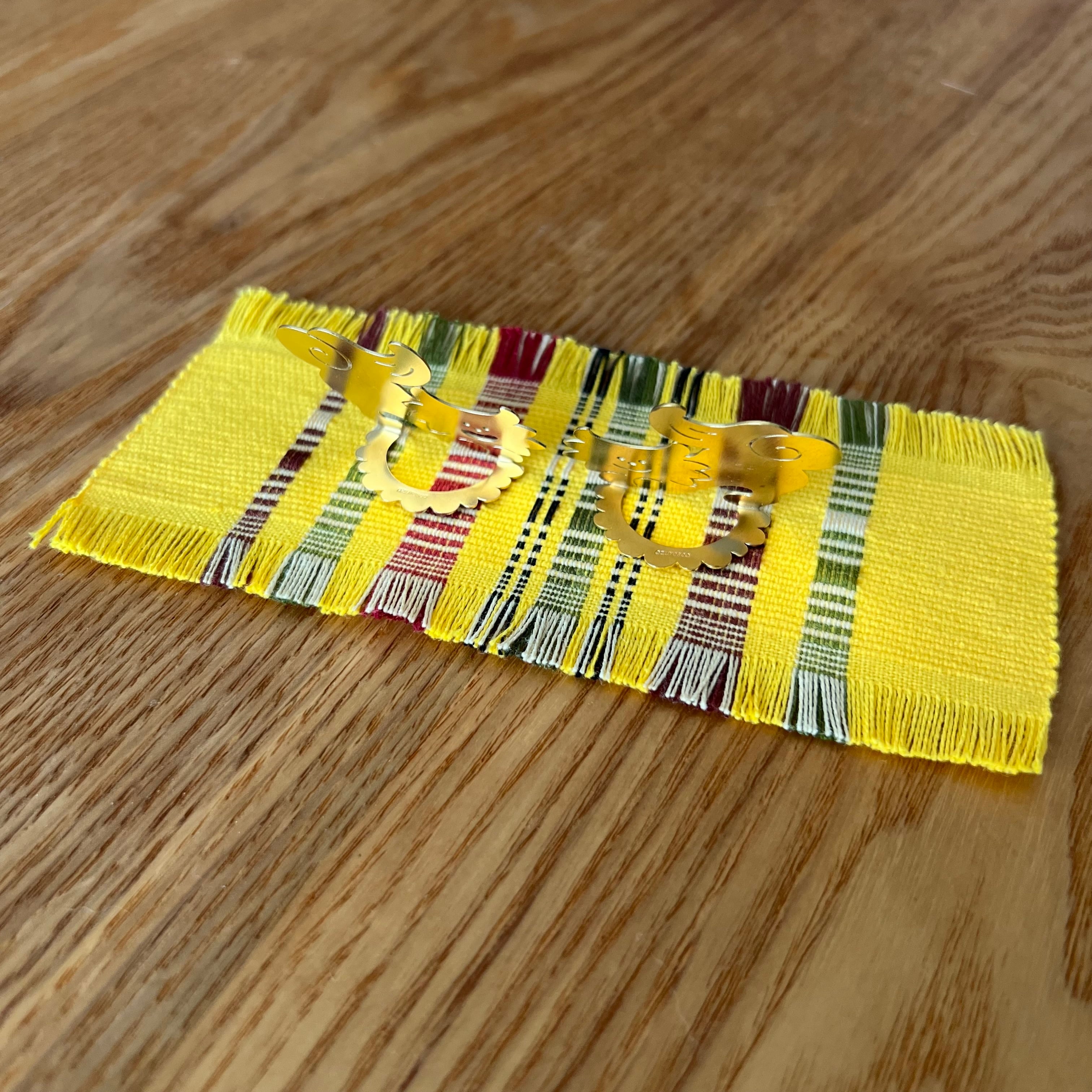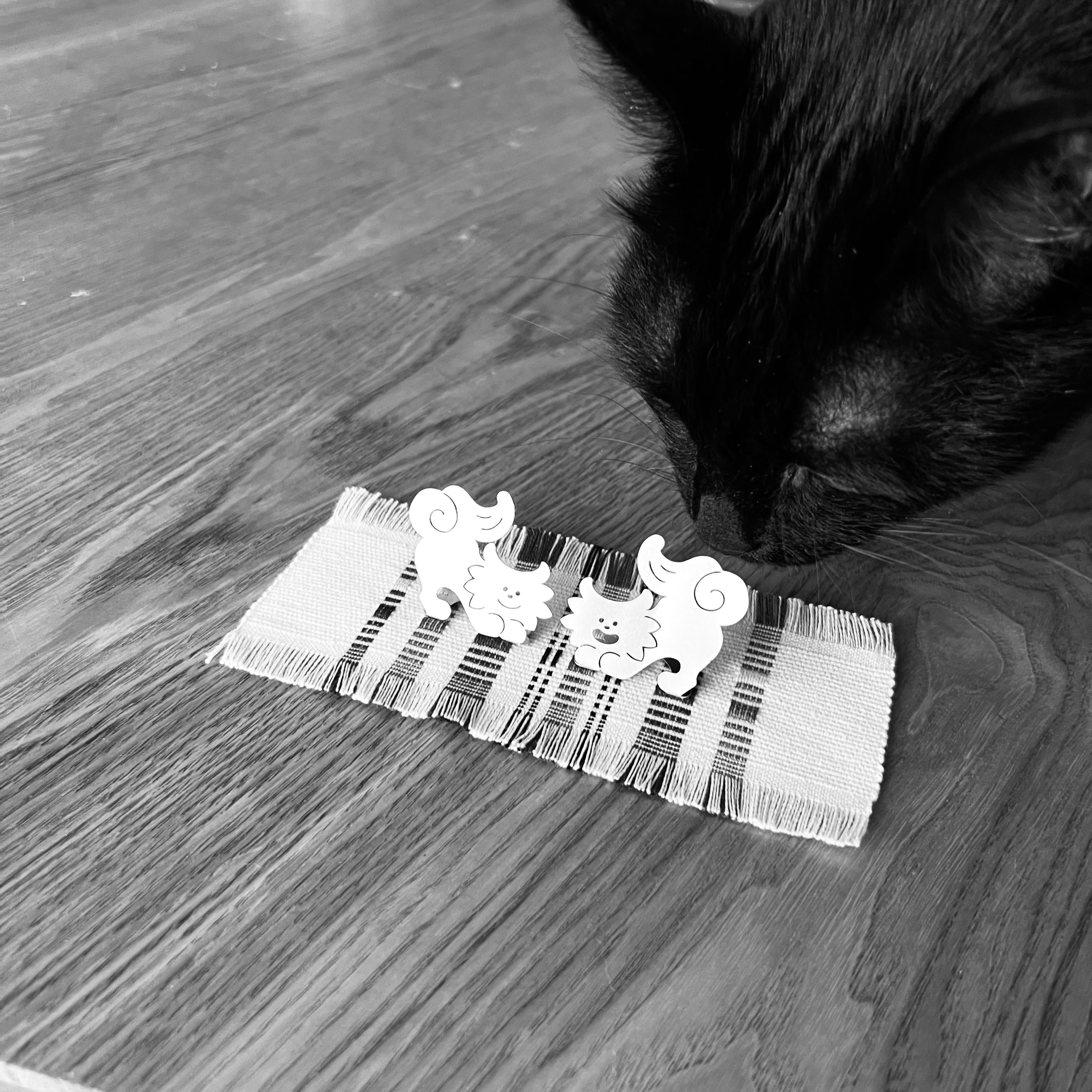 首里織は琉球王国時代から王妃をはじめ士族の女性を中心に代々織り継がれてきました。指定重要無形文化財「首里の織物」の保持者(人間国宝)で、沖縄の伝統工芸の発展に尽力した宮平初子(みやひら・はつこ)さんの想いを受け継ぐ宮平首里織工房さん。この度ご縁があり、おしりトントンしてほシーサーのために特別サイズを織ってくださいました。大変美しい道屯織、数量限定です。