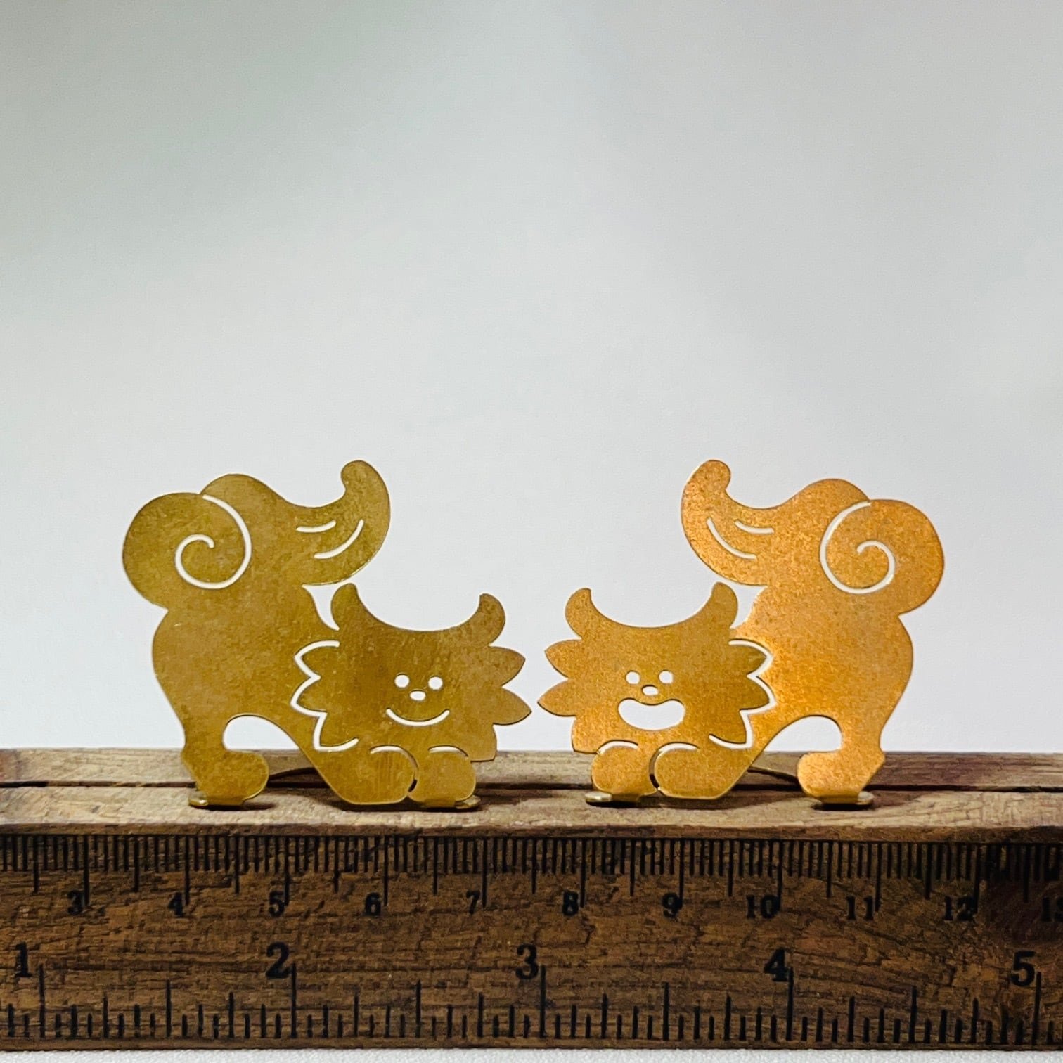 やちむん(焼き物)のシーサーとはまた違った趣きのある金属製シーサー。とにかく薄くて軽いのでお土産として、贈り物として、邪魔にならず生活空間に溶け込めます。落下しても破損しませんのでほんのちょっとした窓枠などにも置けるのがおすすめポイントです。お手持ちのコースターや木片の上に置いても♪